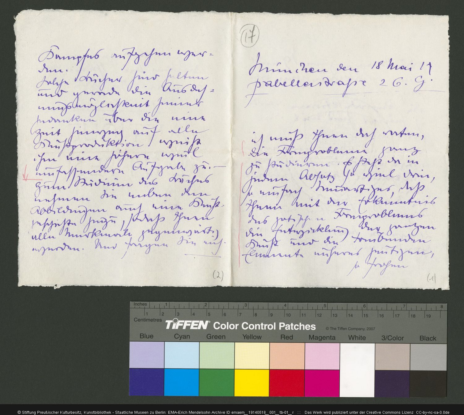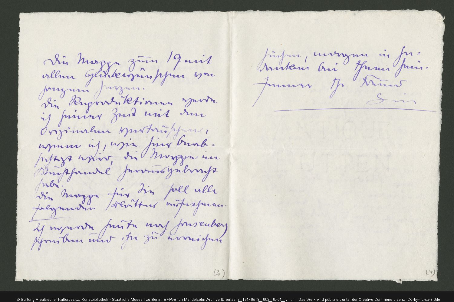 ↩Diese Briefstelle dokumentiert, dass Mendelsohn schon vor dem Ersten Weltkrieg beabsichtigt, Blätter seines graphischen Werkes im Kunsthandel anzubieten und reproduzieren zu lassen.